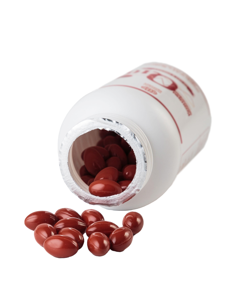 - Растительное масло-носитель (соевое/подсолнечное/оливковое) — улучшает всасывание жирорастворимого CoQ10.