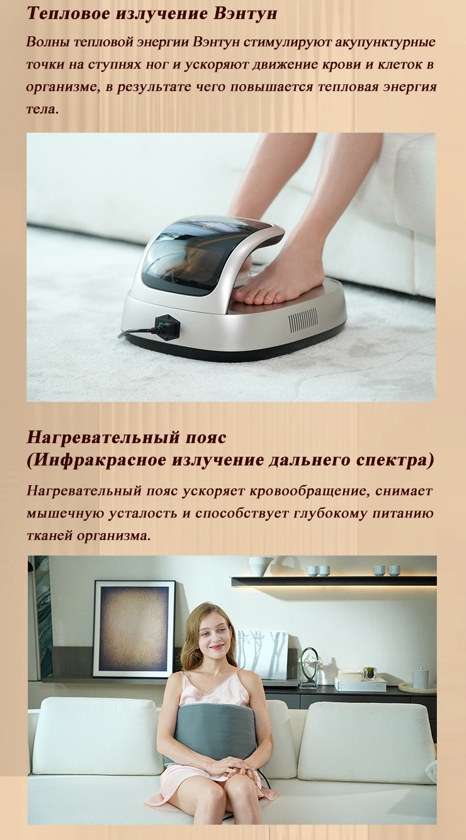- Прогревающий пояс — направленный FIR‑нагрев для расслабления мышц поясницы и живота.
